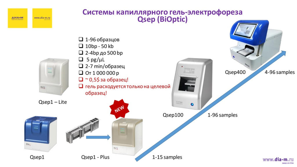 Qsep действительно не такие скоростные: это связано с тем, что они, кроме последней модели Qsep400, обрабатывают по 1 образцу за форез, но зато они при этом дешевле в сравнении с остальными машинами при всех более или менее сходных с другими параметрах.