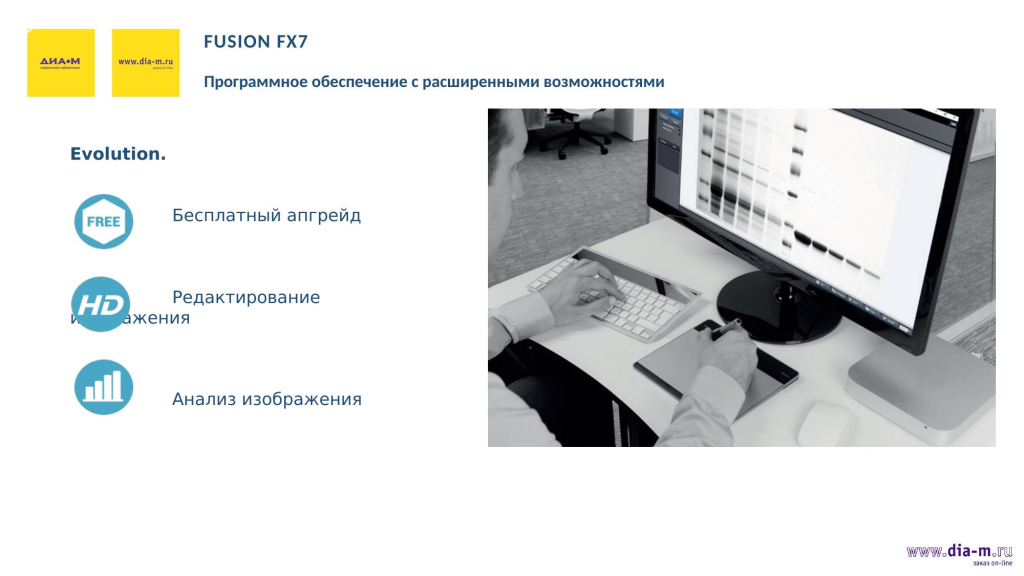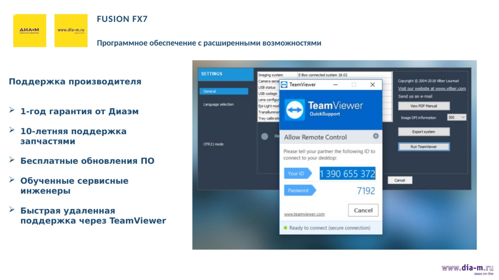 Программное обеспечение компания Vilber поставляет бесплатно. При этом любой апгрейд тоже проводится бесплатно специалистами «Диаэм».