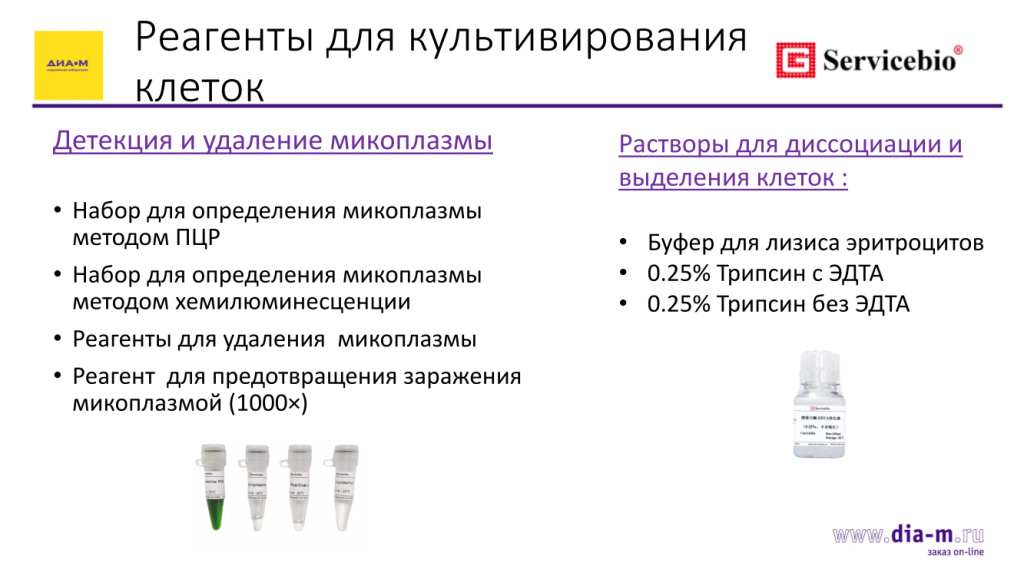 Но этим ассортимент компонентов, производимых Servicebio и необходимых для культивирования клеток, не исчерпывается. Например, есть интересная подборка наборов для детекции и удаления микоплазм.