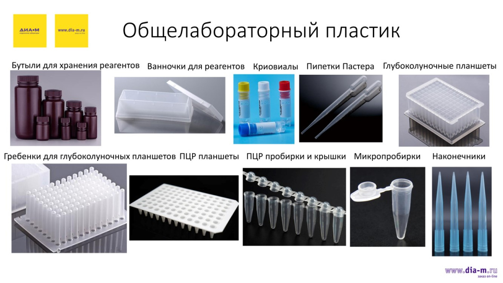- пробоотбора и хранения жидкостей (пипетки, наконечники, пробирки, штативы, коробки, бутыли и пр.),