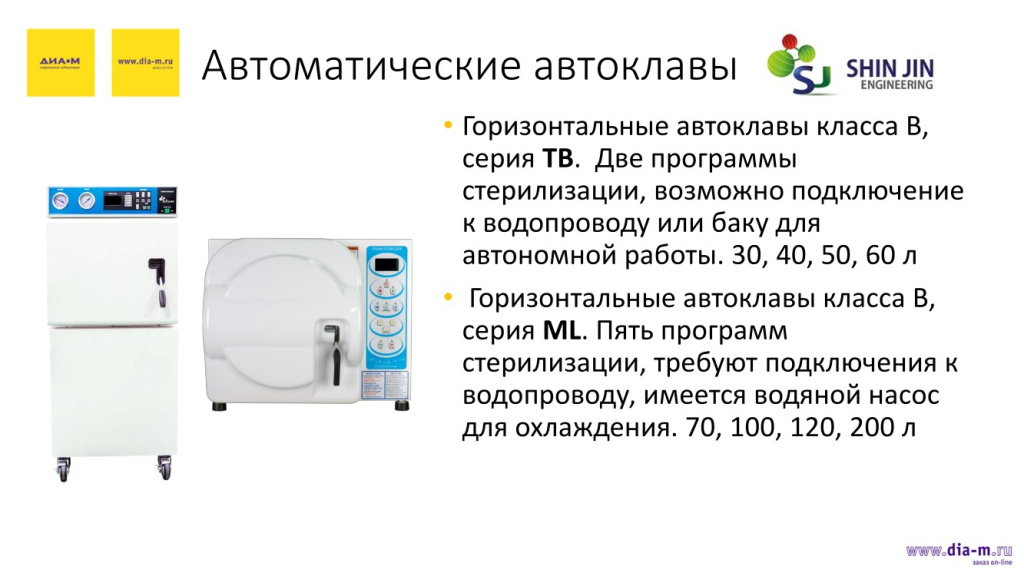 Автоклавы: SJ-FW60, SJ-AD60, SJ-TB60, SJ-ML70, SJ-AC150;