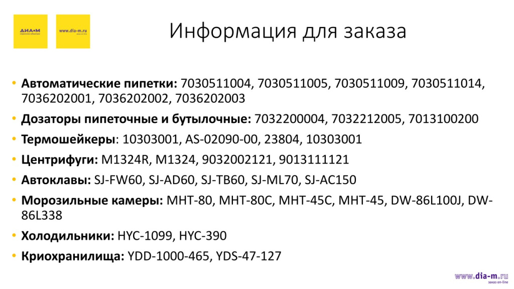Информация о каталожных номерах продукции, описанной выше, приведена на слайде. Подробнее об этих товарах можно узнать на достаточно информативном сайте «Диаэм».