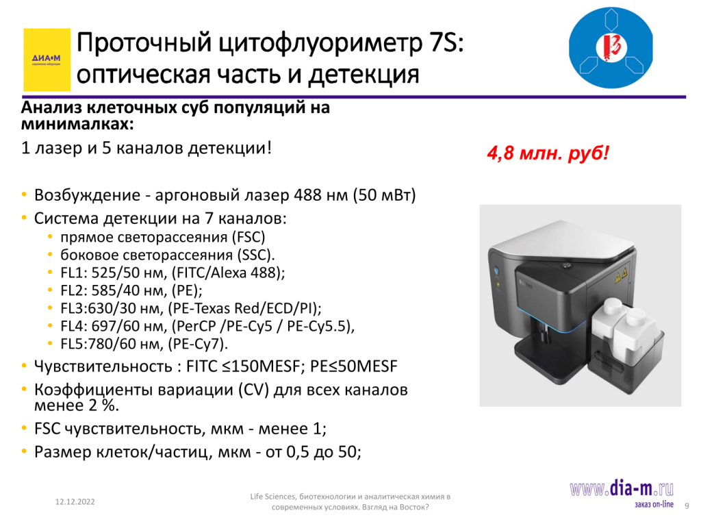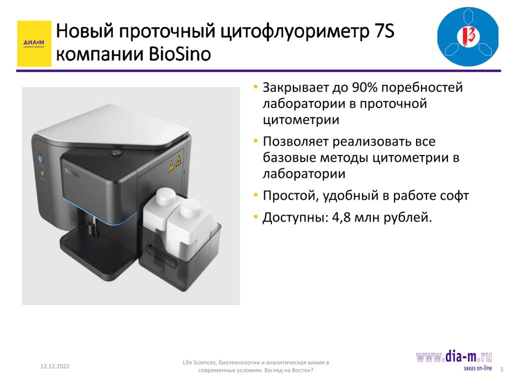 Эта публикация отражает содержание доклада «Проточная цитометрия в современной лаборатории: проточный цитометр 7S от BioSino», вошедшего в программу мультиконференции «Life Sciences, биотехнологии и аналитическая химия в современных условиях. Взгляд на Восток?», состоявшейся 9 ноября 2022 г. в Москве.