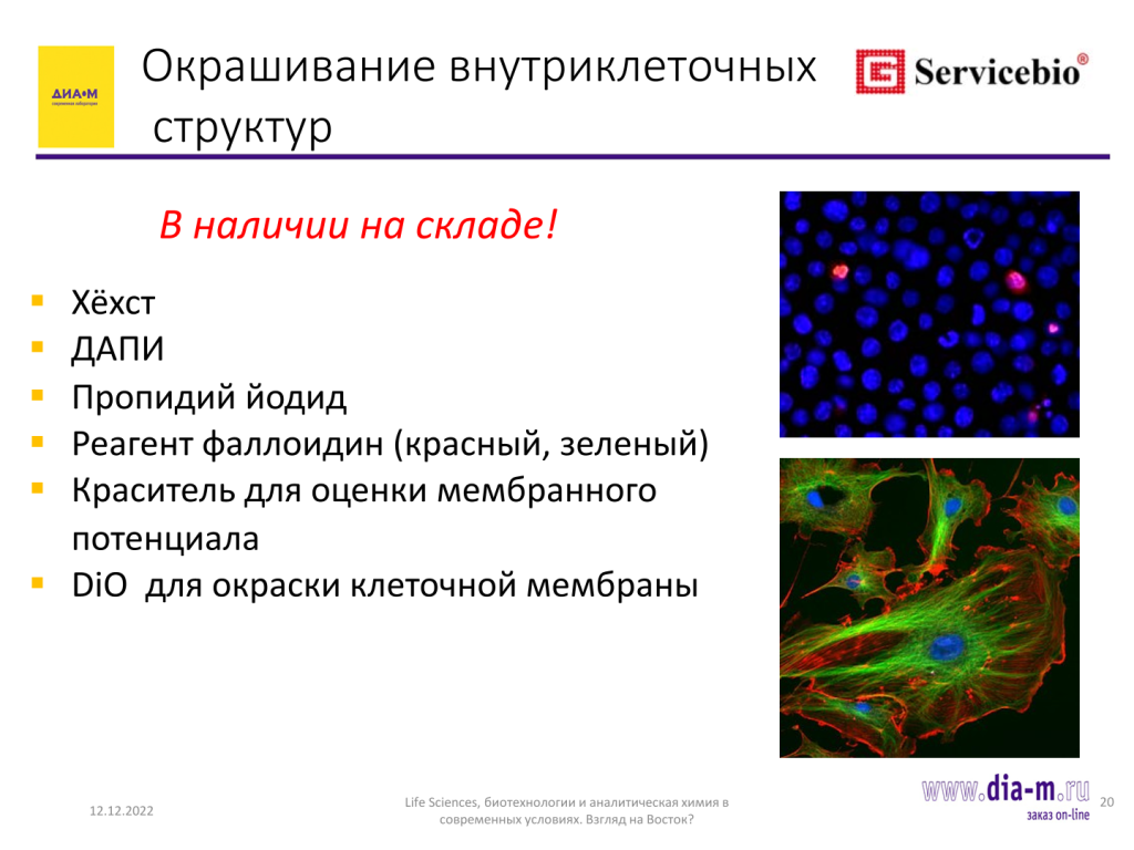 Если говорить об окрашивании клеточных структур для визуализации ядер: под DAPI этот прибор не подходит, но с пропидий иодидом его вполне можно использовать.