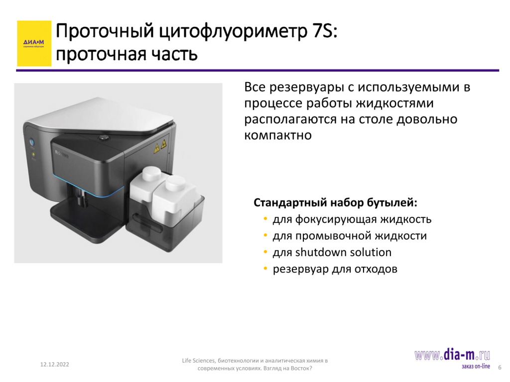 Специалист «Диаэм» Сергей Ирхин рассказал о новинке в аппаратном обеспечении проточной цитометрии — приборе от компании BioSino, получившем на российском рынке название 7S, который, несмотря на свою простоту, закрывает 90% потребностей лаборатории в том, что касается проточной цитометрии.