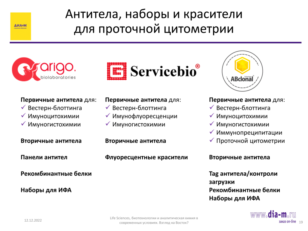 В настоящее время у «Диаэм» есть антитела от Arigobio, Servicebio и ABclonal: если не нашли нужное антитело в одном каталоге, следует посмотреть в остальных — в каком-либо из имеющихся искомое точно есть.