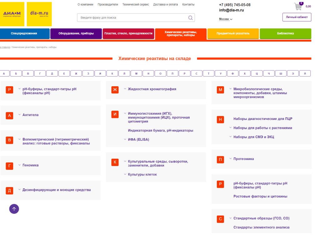 Следует напомнить пользователям о сайте «Диаэм», где в необходимом разделе можно ознакомиться с ассортиментом, ценами, наличием нужных реагентов. Это удобный путь получения коммерческого предложения, если оно требуется быстро.