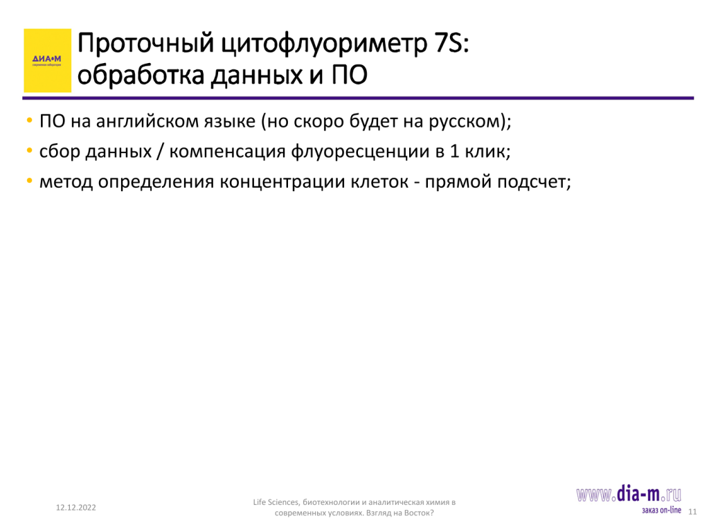 Если говорить о других предложениях по цитометрии и о привычных производителях, то на момент проведения мультиконференции ситуация с Bio-Rad и сортерами от этого производителя пока остается непонятной.