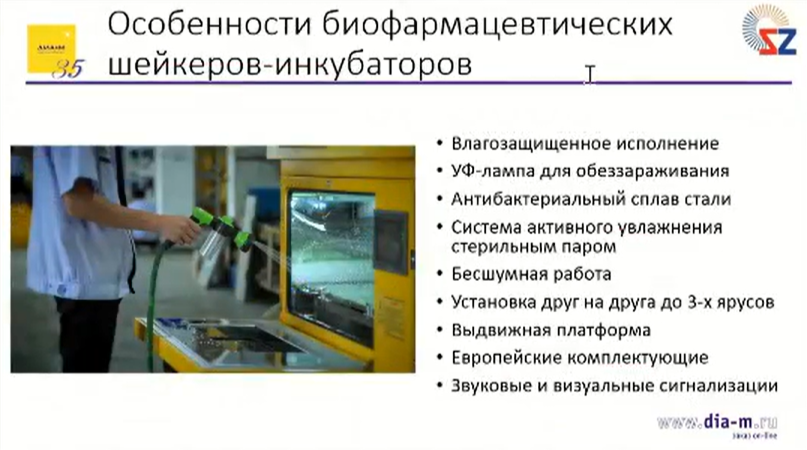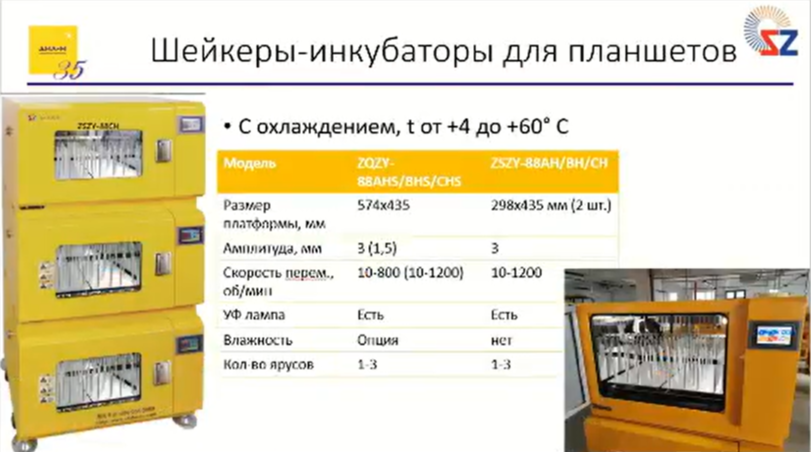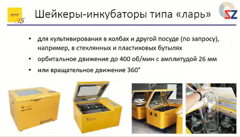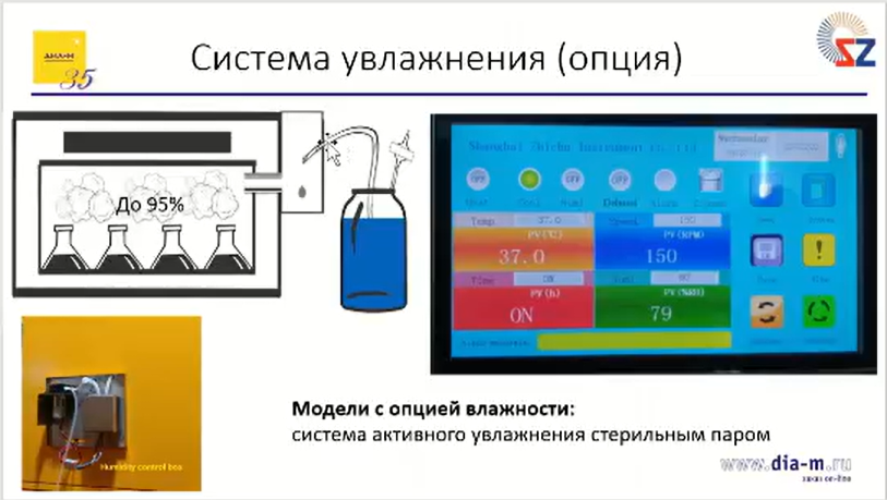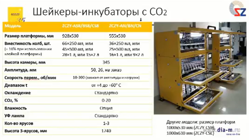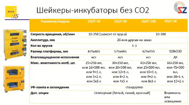 Стандартно эти шейкеры уже поставляются с охлаждением, контролем углекислого газа, ультрафиолетовой лампой для обеззараживания.