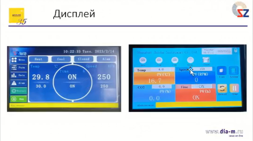 На разных моделях шейкеров-инкубаторов дисплеи несколько отличаются по внешнему виду, но в любом случае это дисплеи на английском языке, а не на китайском.