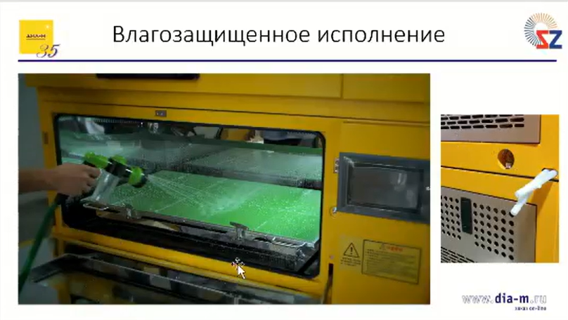 Картинка описывает реальность: камеру шейкера действительно можно поливать из шланга внутри. Такое исполнение имеют не все модели, но где встроена опция увлажнения — есть и защита от влаги. А если шейкер не имеет влагозащитной функции, можно его этой опцией дополнить.