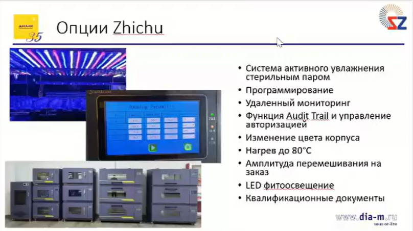 Руководитель направления «Биотехнология» компании «Диаэм» Кристина Яковлева рассказала о новых решениях для суспензионного культивирования микроорганизмов и клеток, предлагаемых топовым китайским производителем Zhichu. В рамках вебинара рассмотрены модельный ряд, области применения, варианты комплектации приборов и достоинства продукции упомянутого производителя.