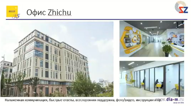 «Диаэм» получила рекомендации от собственных клиентов, у которых есть партнеры в Китае и которые рекомендуют именно этого производителя. Сама компания Zhichu нацелена на работу с Россией. У нас прекрасно выстроены коммуникации, в настоящее время планируется поездка на производство и обучение на базе Zhichu наших инженеров (специалистов «Диаэм»), так что можно с уверенностью сказать: наши компании расположены друг к другу.