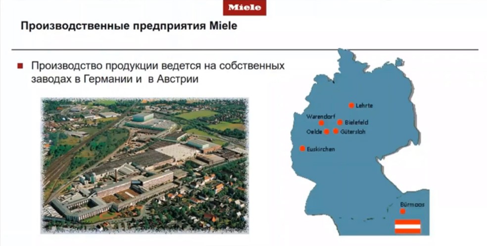 Все производство Miele находится на территории Германии – только один завод по производству принадлежностей находится в Австрии, но практически на границе с Германией, так что качество в данном случае идентичное и очень высокое. Завод, который отвечает за моечные автоматы, находится в городе Бильфельде.(Рис. 8)