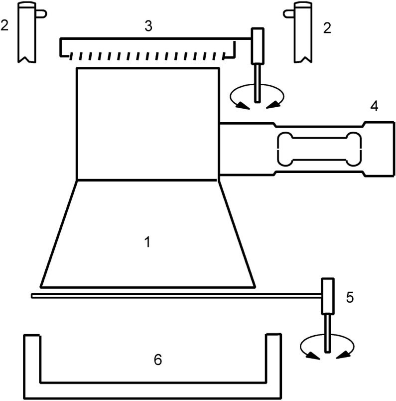 • Затем поверхность образца в испытательной ячейке выравнивается контактным рычагом (3), установленным в верхней части испытательной ячейки.