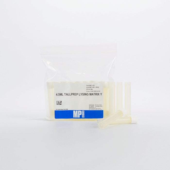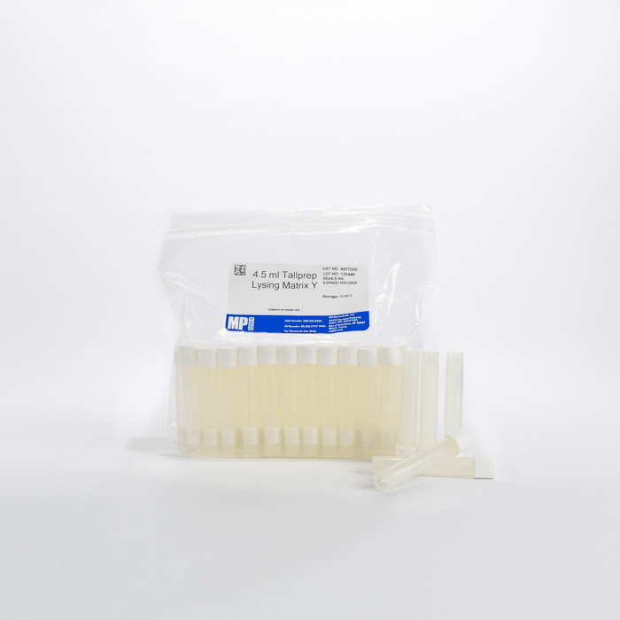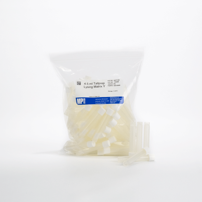 Эти матрицы имеют высокую плотность и крайне высокую твердость, что делает их идеальными для разрушения очень жестких клеточных стенок, а их гладкая поверхность снижает количество обрезков молекул НК /белков. Лизирующий Матрица Y используется в основном для лизиса грамположительных и грамотрицательные бактерии, грибковых спор и тканей, дрожжей, плесени, нитчатых водорослей и биопленок.