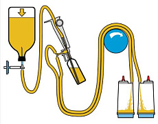 Набор представляет собой блистер, в который асептически упакованы одноразовые: канистры, пластиковые трубки и иглы с вент. фильтрами.