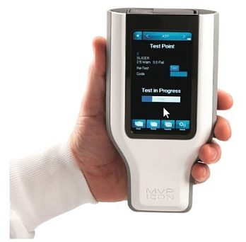 Люминометр MVP Icon контролирует помимо АТФ, другие ключевые параметры основные параметры в соответствии с программой анализа рисков и контроля критических точек на производстве. Люминометр измеряет и регистрирует: pH, температуру, проводимость, концентрацию. Система MVP Icon в течение одной минуты определяет степень чистоты производственных линий и позволяет при необходимости провести дополнительную дезинфекцию и мойку оборудования. Прибор является универсальным и может использоваться на любом производстве, где необходимо проводить гигиенический мониторинг поверхностей и жидкостей.