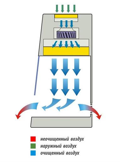 • очистка воздуха, поступающего в рабочую камеру, происходит через фильтр предварительной очистки G4 и приточный НЕРА-фильтр Н14;