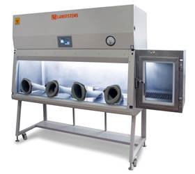 Бокс (шкаф) биологической безопасности класс III, БМБ-III-«Ламинар-С»-1,8 PROTECT, это бокс, в котором рабочая зона полностью изолирована от внешней среды, а оператор отделен от рабочего места физическим барьером и может проводить манипуляции в рабочей камере бокса только через перчатки, механически соединенные с боксом. Профильтрованный воздух постоянно подается в бокс, а удаляемый воздух, очищенный минимум двойными высокоэффективными фильтрами, через собственную вытяжную систему выводится во внешнюю среду. Бокс применяется при работе с особо опасным микробиологическим материалом, вирусами, бактериями; при работе с химическими веществами, требующими контроля состава атмосферы.
