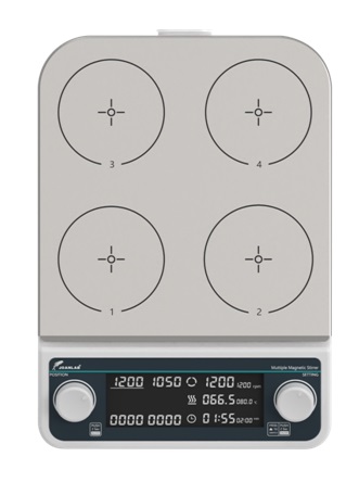 Магнитные мешалки с нагревом DHP4-550 — нагревают до 550 °С, и перемешивают до 10 л жидкости на стеклокерамической платформе, размером платформы 100×100 мм, со скоростью перемешивания 50-1500 об/мин.
