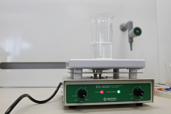 Мешалка магнитная с нагревом — устройство для равномерного перемешивания реагентов внутри емкости за счет вращения магнитных перемешивающих элементов (мешальников) с функцией подогрева емкости с жидкостью. Мешальник сделан из магнита и покрыт тефлоновой оболочкой или стеклом, помещается в емкость с жидкостью и приводится в действие вращающимся магнитным полем от привода в корпусе прибора. Основные типы магнитных мешальников: круглые, овальные, треугольные, эллиптические, форма косточки, крестообразные, цилиндрические.