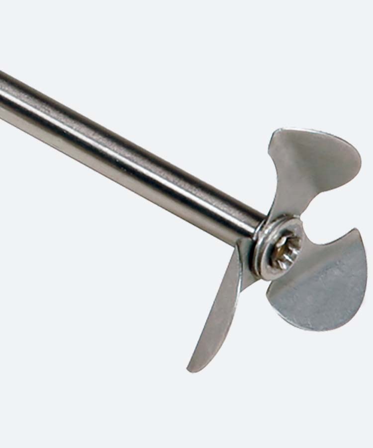Лопастной перемешивающий элемент, 3 лопасти которого имеют форму пропеллера для оптимального перемешивающего потока. Предназначен для использования с верхнеприводными мешалками Fluko.