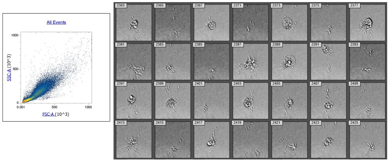- параметры: прямое светорассеяние, два параметра флуоресценции;