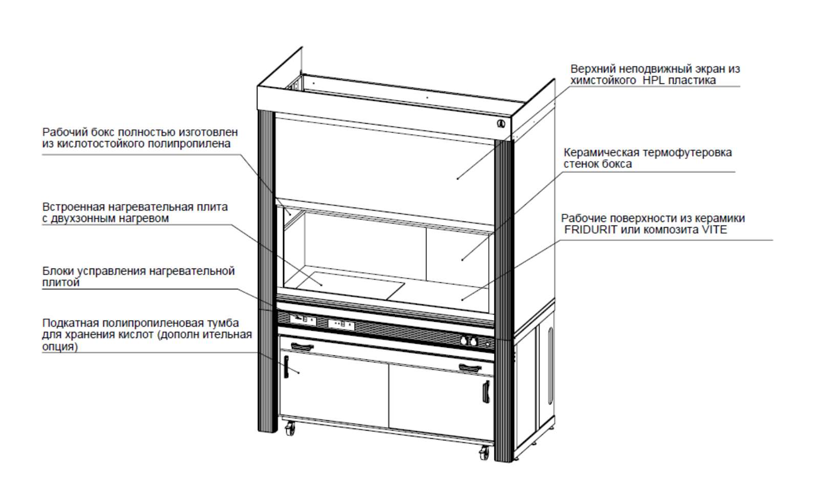 - передний бортик (предохраняет от утечки разлитой жидкости) — кислотостойкая нержавеющая сталь;