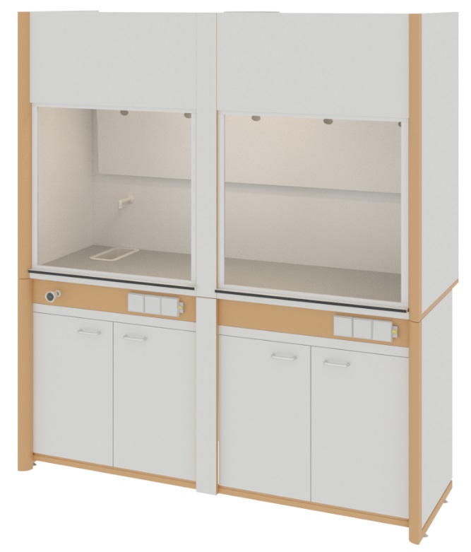 Шкаф вытяжной общего назначения, ширина 184 см, корпус – меламин, столешница –керамогранит, 2 подъемных экрана, раковина, 2 тумбы, ЛОиП