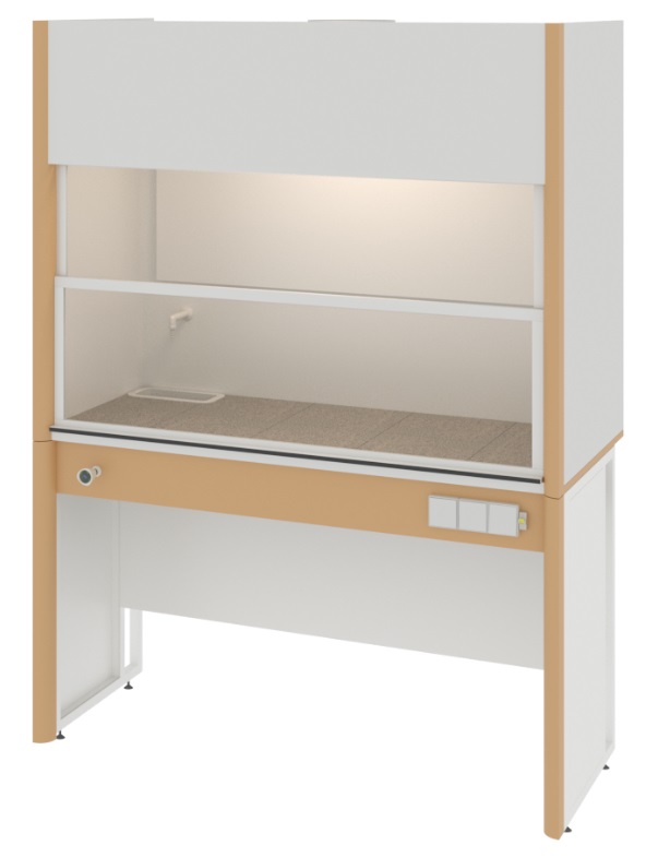 Шкаф вытяжной общего назначения, ширина 150 см, корпус – металл, столешница – керамогранит, 2 подъемных экрана, раковина, ЛОиП