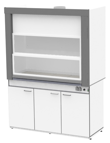 Шкаф вытяжной общего назначения, ширина 150 см, корпус – ЛДСП, столешница – монолитный пластик Trespa, 1 тумба, ЛОиП