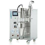 Распылительная сушилка SD-6000 имеет производительность 1500 мл/ч для H₂O, с размером частиц 1-25 мкм. ЖК-дисплей с сенсорным экраном, отображающий параметры: температура воздуха на входе, температура воздуха на выходе, скорость перистальтического насоса, объем воздуха, частота прохождения иглы.