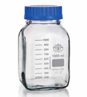 Бутыли имеют чёткую шкалу и большое окно для маркировки. Винтовые крышки синего цвета выдерживают автоклавирование до +120°С.