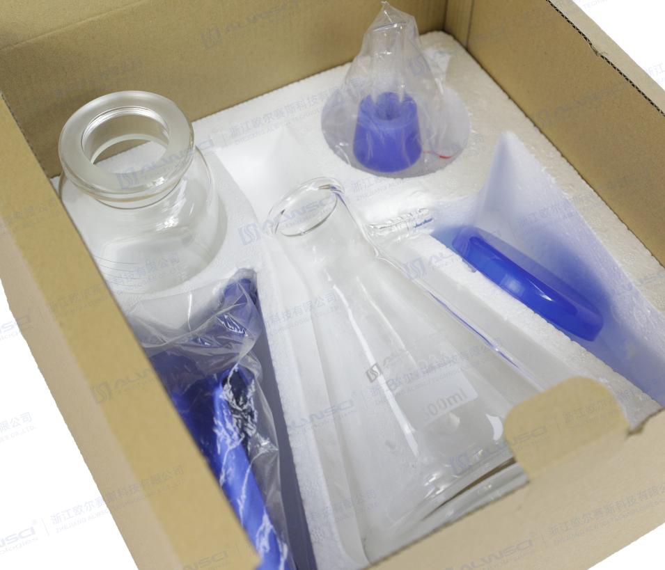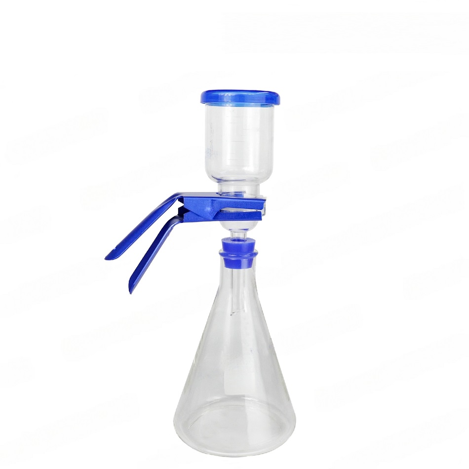 Комплект поставки: крышка, стеклянная воронка на 300 мл, стеклянное основание с фильтром, алюминиевый зажим, колба на 500 мл.