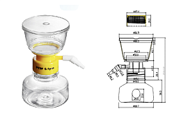 Комплект поставки: фильтр-воронка, встроенный фильтродержатель с мембраной, встроенный боковой вакуумный коннектор и приемная бутыль с крышкой.