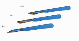 Скальпель общего назначения, длина 150 мм, нестерильный, сменные стальные лезвия, изготовлен из ударопрочного полистирола, тип 3, синий, Bochem
