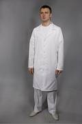 Халат лабораторный изготовлен из ткани LS-MED (65% полиэстер, 35% хлопок). Используются для защиты от проникновения пыли и мелких брызг химических реактивов. Благодаря наличию в составе антипиллингового полиэфира не образует «катышков».