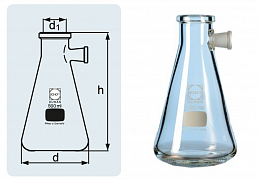 Колба Бунзена, 250 мл, цилиндрическая горловина, исп. 1, ГОСТ 25336-82, 1 шт., Россия
