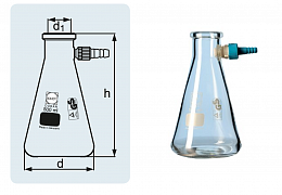 Колба Бунзена, 500 мл, цилиндрическая горловина, исп. 1, ГОСТ 25336-82, 1 шт., Россия
