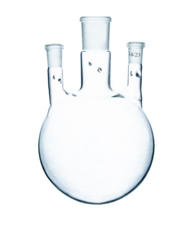 Колба трехгорлая, круглодонная, 2000 мл, с 3-мя вертикальными горловинами, 29/32 29/32 14/23, без зацепов, 4 шт., Россия