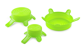 Крышки широкого спектра применений, так как могут использоваться для покрытия и герметизации различной лабораторной посуды — колб, стаканов, мензурок. Изготовлены ​​из эластичного, химически стойкого и термостойкого силикона, диапазон температур применения от -40 до +180 °C. Плотно прилегают к контейнеру и защищают содержимое посуды от пыли и брызг.