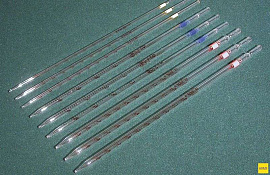 • цветная маркировка на верхнем конце пипетки: 1 мл – желтую, 2 мл – зеленую, 5 мл – синюю и 10 мл – оранжевую;