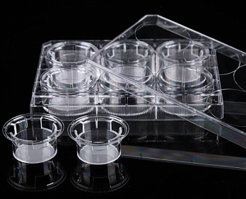 Планшеты культуральные со вставками с обработанной поверхностью (TC-treated) — для культивирования адгезивных и полуадгезивных клеточных культур. Полиэтилентерефталатная мембрана — обеспечивает достаточную оптическую прозрачность для визуализации контуров клеток с помощью фазово-контрастной микроскопии. Вставки совместимы с большинством растворителей, используемых для фиксации и окрашивания клеток.