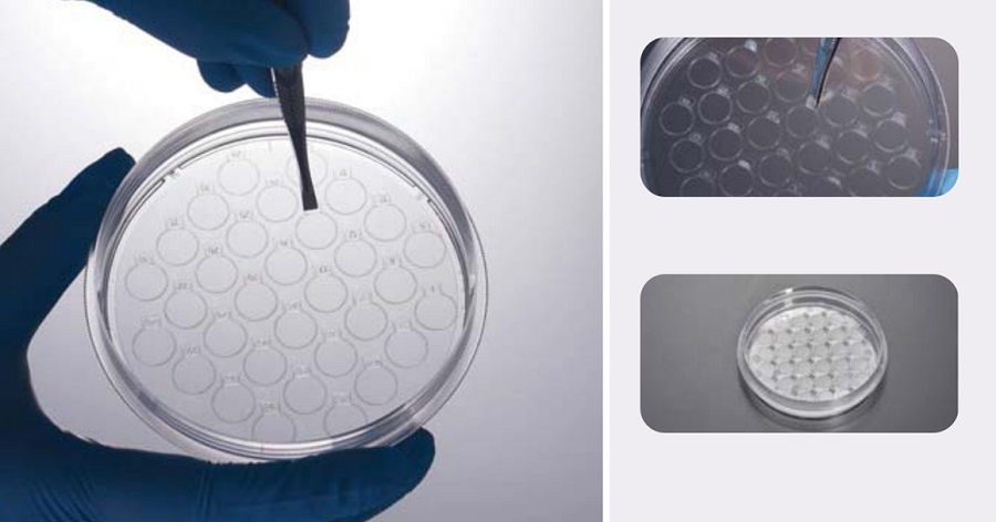Запатентованный продукт производства Jet Biofil (номер патента ZL201520113833.9, ZL201420594580.7, ZL201420594259 и ZL200610047607.0) используют для культивирования прикрепленных клеток, растущих на твердых поверхностях. Если исследователь использует большое число проб и проводит окрашивание иммунофлуоресцентными красителями, то становится очень удобно проводить эксперимент в одной чашке с разными образцами. Клетки могут расти в одной чашке, но на разных покровных пластинках во время культивирования.