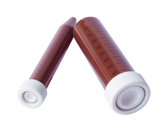 Центрифужные пробирки 15 и 50 мл для светочувствительных проб изготовлены из ПП, соответствующего стандарту USP, и не пропускают 100% УФ-лучей. Они предназначены для хранения или центрифугирования светочувствительных проб с защитой от света.