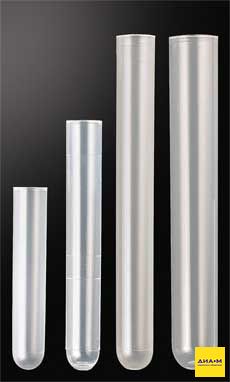 Пробирки до 600 мл широко применяются в лабораторной практике, различаются по объему, по материалу, по типу дна, наличием «юбки» устойчивости. (Пробирки типа Эппендорф до 25 мл и пробирки до 2 мл, пробирки для центрифугирования представлены в соответствующих разделах).