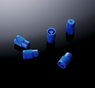 Пробка-крышка из полиэтилена (ПЭ) с гладким внутренним цилиндром, вплотную прилегающим к внутренней стороне пробирки; верхняя часть пробки плотно охватывает горловину пробирки и спускается по наружной стороне.