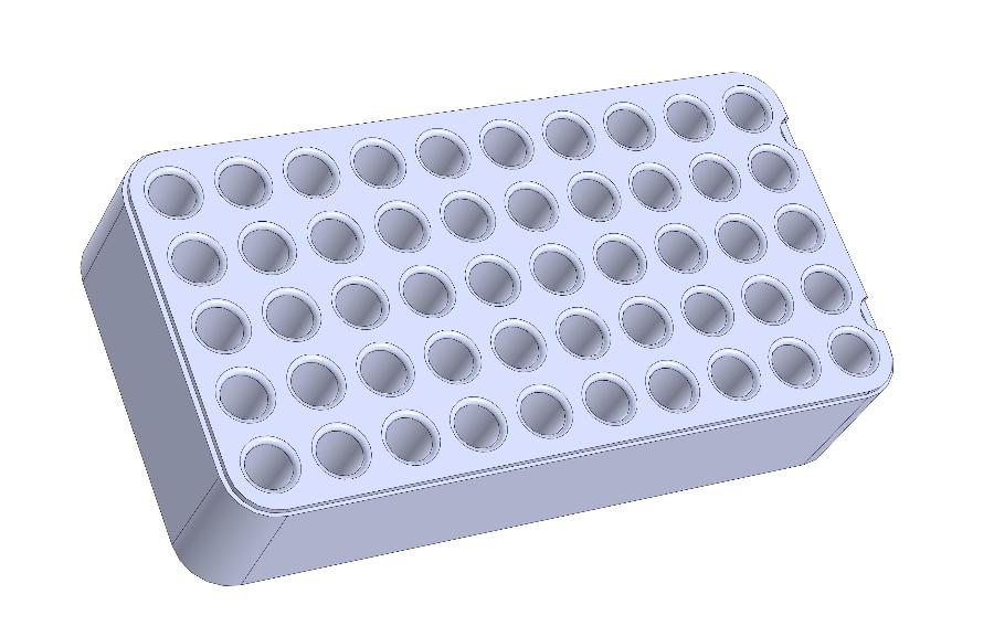 Цельнолитой штатив изготовлен из пластика с лунками, в которые помещаются пробирки/контейнеры, отличается высокой механической прочностью (ударопрочный пластик) и устойчивостью к воздействию химических реагентов. Благодаря своей конструкции штативы легко и прочно штабелируются, обеспечивая экономию пространства при хранении. Особенно подходит для компактного хранения резервных копий образцов. Блочный штатив удобно дезинфицировать, благодаря сквозным отверстиям в каждой лунке. Подлежит автоклавированию.