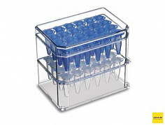 Изотермическая система IsoTherm-System термостатирует и поддерживает температуры 0 °С и -21 °С для пробирок 0,5 мл или 1,5/2 мл. Система предварительно должна быть охлаждена в морозильной камере. Используется для транспортировки, хранения, медленного оттаивания глубоко замороженных образцов, сохранения активности ферментов.